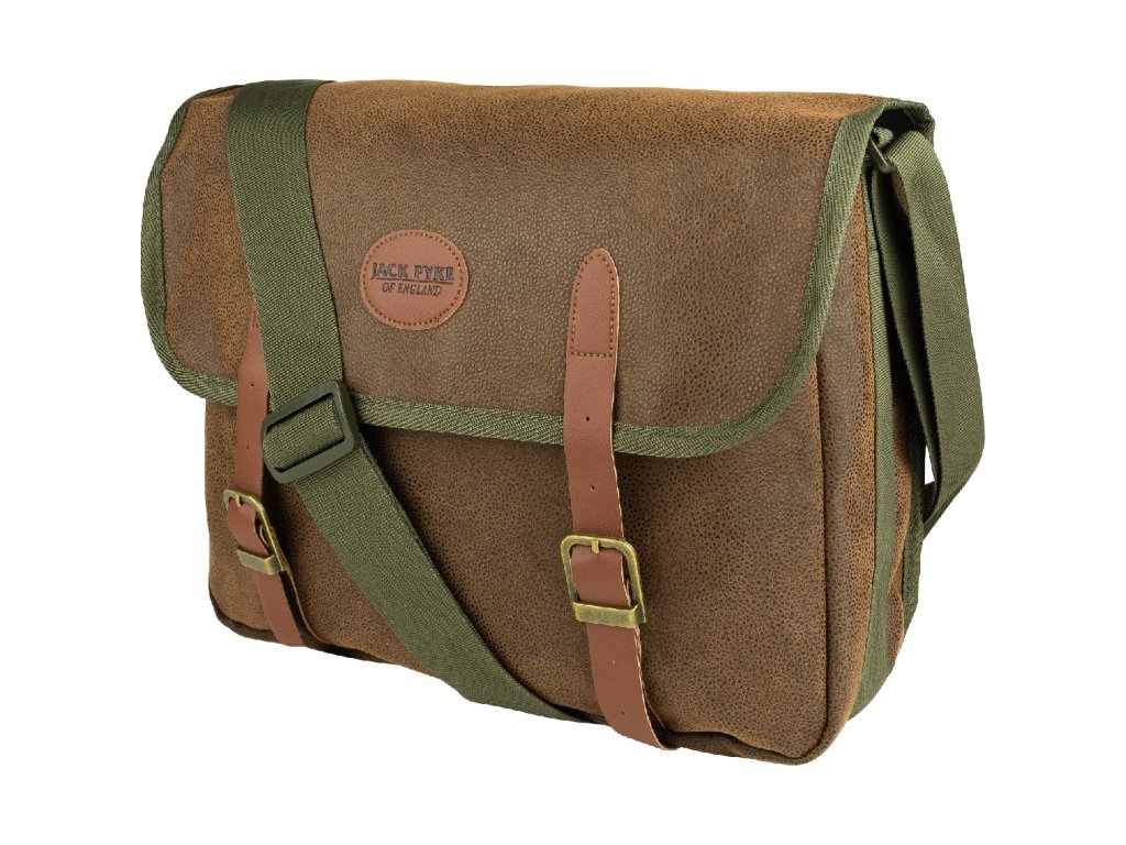 Väčšia taška cez rameno v elegantnom poľovníckom anglickom štýle s koženými doplnkami, od firmy Jack Pyke. Vhodná nielen pre lovcov a poľovníkov. Z materiálu DOUTEX (Durable Outer Textile). ktorý je veľmi odolný a svojím povrchom pripomína kožu.
